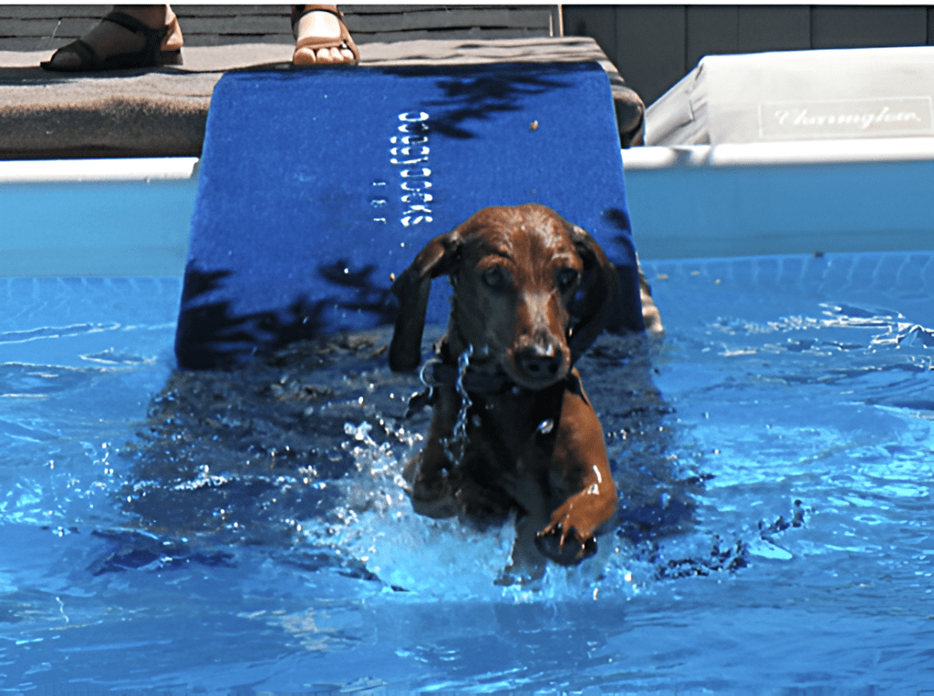 - When it is time to leave the water, your dog will swim to the end of the doggydocks® and walk right out – no lifting, no struggling, just effortless fun