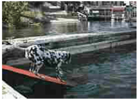 The doggydocks® gives dogs confidence, even those that are new to the water. Because doggydocks® is stable, the only movement is the gentle up-and-down of the water as your dog walks on or off. Some dogs can be a little unsure in new environments, but doggydocks stays solid under their feet. That stability gives dogs a sense of security, which is the most important thing when introducing your dog to a lifetime of fun on the water.Most dogs learn to use our ramp within seconds! Check out our video tutorial for a simple training tip that will have your pup using it in no time.